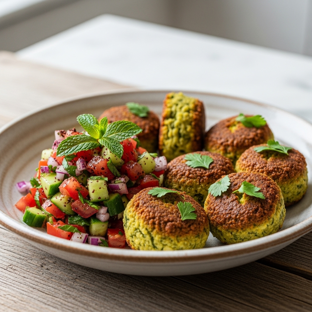 EasyVegan Persian Breakfast Delight: Aromatic Herbed Falafel and Tomato-Cucumber SaladCookJunkiePeruvianSalads