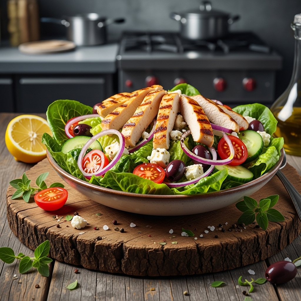 Vibrant Mediterranean Salad Bowl with Grilled Chicken