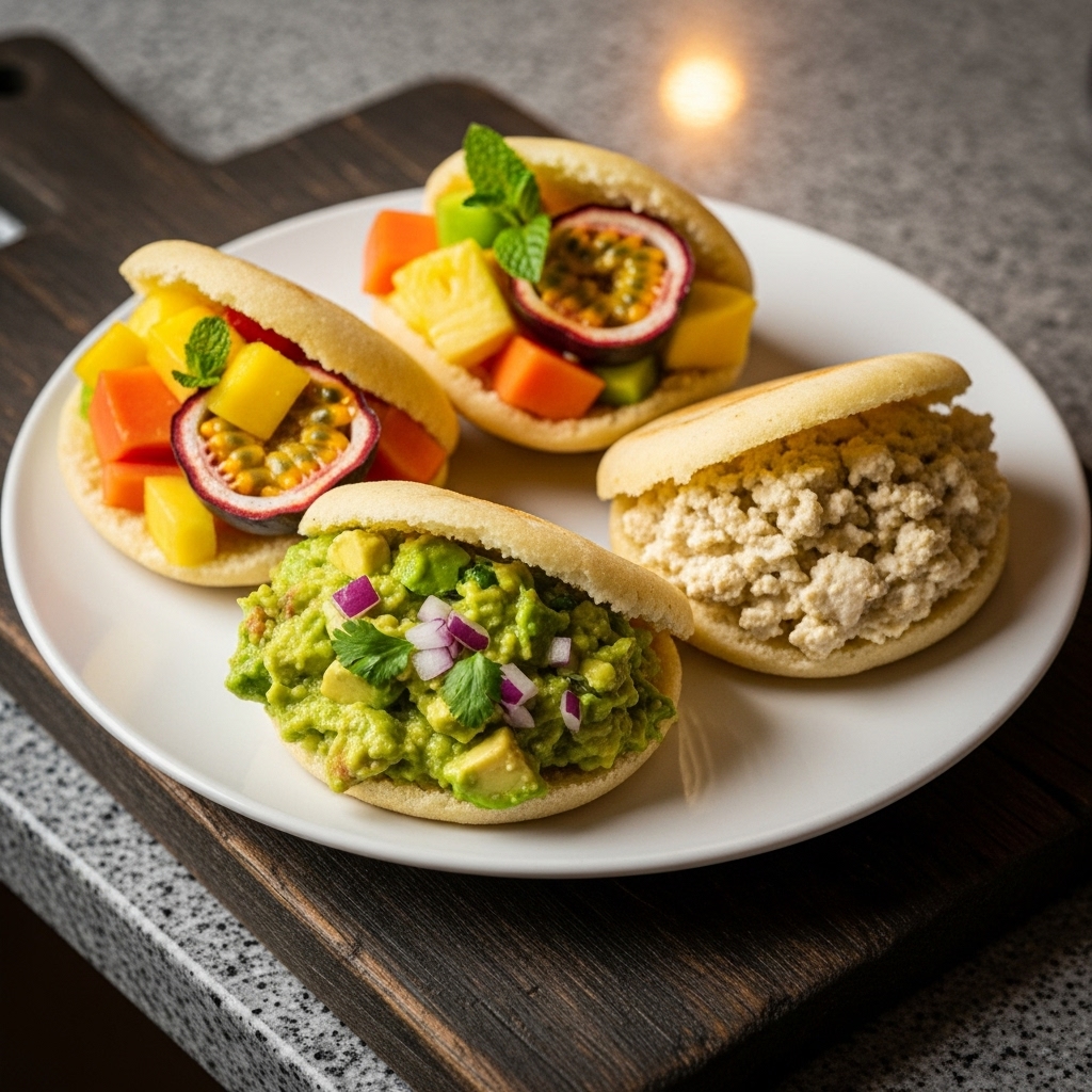 EasyAromatic Venezuelan Breakfast Tapas for Vegetarians: Arepas, Guacamole, and Tropical Fruit SaladCookJunkieLatin AmericanBreakfastVegetarian